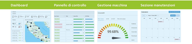 Il primo aspetto da considerare è che grazie alla piattaforma IoT di Blupura molti interventi che normalmente necessiterebbero la mobilitazione di un tecnico potranno essere comodamente effettuati da remoto, come l’attivazione o la disattivazione del portion control. Si potranno poi organizzare i giri per l’assistenza in maniera più efficiente, abbattendo tempi e costi grazie alla pagina dedicata alle schede di manutenzione in cui il dealer potrà monitorare lo storico degli interventi fatti e programmare quelli futuri, si organizzeranno gli interventi per prossimità geografica e per urgenza.