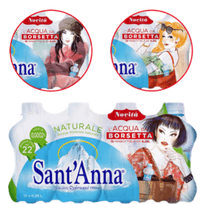 La nuova Acqua Sant’Anna da borsetta è disponibile in pratiche confezioni da dodici minibottiglie. Il pack è originale, glamour e divertente: ogni consumatrice potrà scegliere infatti tra le confezioni decorate con le immagini di tre diverse donne dalla personalità speciale.