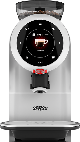 Dalle dimensioni di una macchina a capsule, si contraddistingue per la possibilità di preparare con chicchi macinati al momento ottimi caffè espresso oppure espresso doppio, ristretto, ristretto doppio o americano. Abbinabile ad un piccolo frigorifero per il latte, SPRSO è anche predisposta per l’erogazione di cappuccini, latte macchiato e caffè latte.