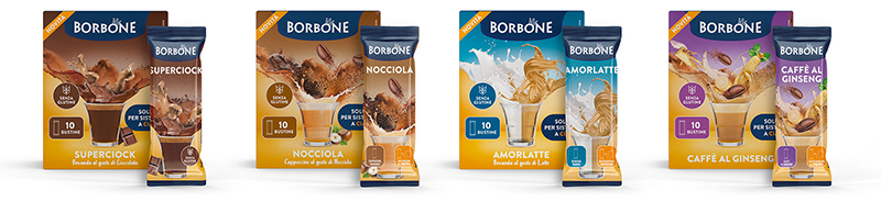 Dopo il lancio della gamma “Nuove Emozioni di Gusto” declinata nei tre sistemi a capsula, il restyling e l’ampliamento delle cialde aromatizzate, nello specifico: espressi, tè e tisane. Caffè Borbone lancia “Stick Mania” la linea di solubili tascabili, pratica e veloce da preparare in ogni momento. Le ricette sono quattro: Nocciola un cappuccino al gusto di nocciola, Ginseng impreziosito dal caffè, Superciock al sapore intenso di cioccolato, e la novità assoluta “Amorlatte” una bevanda unica al gusto di latte.