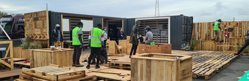 Il ferro è stato riverniciato e lavorato in modo da ricavare delle finestre, il legno è stato a sua volta recuperato e lavorato, impiegando alcuni rifugiati politici, che hanno avuto così la possibilità di ricevere un reddito ed imparare un mestiere. La fase di lavorazione del legno è stata infatti concepita come un vero e proprio corso di formazione di 216 ore, alla fine del quale i partecipanti hanno ricevuto un attestato che permetterà loro di inserirsi nel mondo del lavoro.