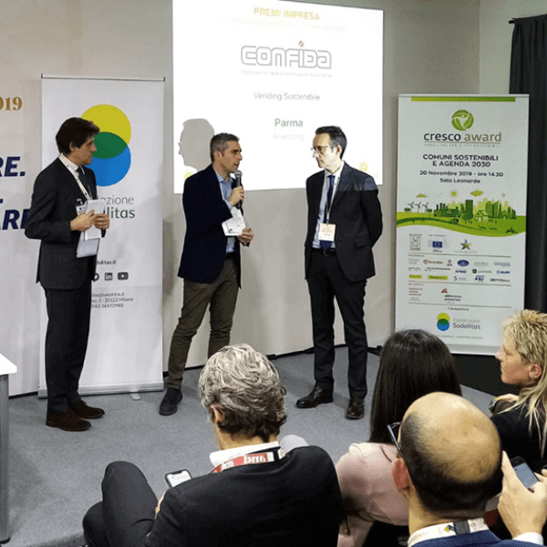 La città ha ricevuto il riconoscimento per aver ideato e realizzato il miglior progetto di sviluppo sostenibile applicato al settore dei distributori automatici. A ritirare il premio è stato il Sindaco di Parma Federico Pizzarotti nell’ambito del “Cresco Award – Città sostenibili”, organizzato da Fondazione Sodalitas e ANCI Associazione Nazionale Comuni Italiani.