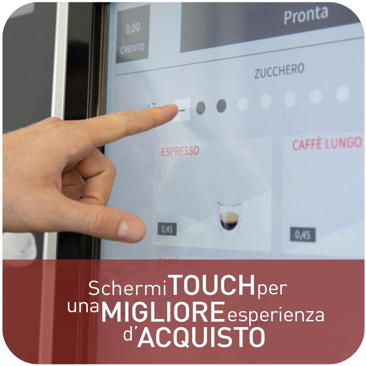 Così, dopo aver promosso la qualità del caffè e delle vending machine, l’ampiezza dell’offerta alimentare, la possibilità di pagare via app, con gli schermi touch è ancora la tecnologia a fare la differenza!