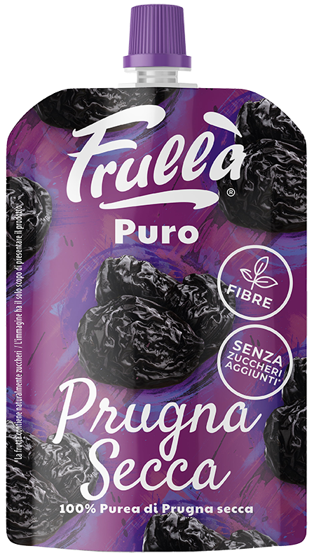 La linea Frullà Puro si arricchisce di una nuova referenza: dopo Ananas, Mango e Banana arriva Frullà Puro Prugna Secca, l’unico prodotto nel panorama della frutta frullata contenente esclusivamente il 100% di prugna secca.