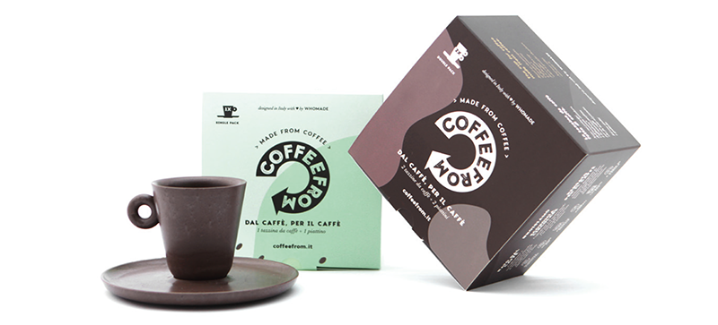 Dal loro recupero post consumo nasce il progetto Coffeefrom, il cui obiettivo è di sviluppare un polimero bio-based, utilizzando come materia prima i fondi del caffè. Da esso è possibile ricavare un’infinità di oggetti: dall’home decor ai mobili, dal tableware al packaging, alimentare e non.