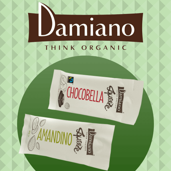 Nel loro nuovo packaging da 18gr, in bustine pratiche, “ready to go” Chocobella e Amandino Squeeze sono perfette per gustare ovunque la bontà della crema spalmabile al cacao e nocciole e delle mandorle Damiano 100% bio.