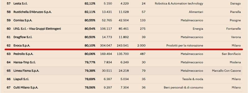 Solo le prime 200 aziende, che hanno registrato performance record di export, si sono qualificate per essere inserite nella graduatoria pubblicata da Il Sole 24 Ore. Con oltre l’80% della produzione esportata nel 2020, Evoca Spa si è classificata al 62° posto della classifica.