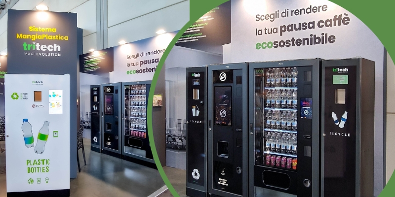 L’evoluzione di TRITECH MAXI EVOLUTION presentata a Ecomondo 2022 vede anche l’implementazione di un tablet touch screen 15,6 pollici dotato di vetro antivandalico che rende la macchina adatta anche all’installazione anche in luoghi pubblici e molto affollati. TRITECH MAXI EVOLUTION gestisce anche il sistema cauzione attraverso un sistema ricarica chiave: gli imballi vuoti precedentemente acquistati presso il distributore automatico associato, vengono accreditati diventando un bonus spendibile.