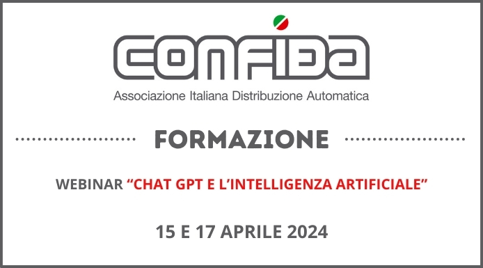 CONFIDA offre ai propri associati il webinar gratuito “Chat GPT e l’Intelligenza Artificiale: miglioriamo la nostra produttività e comunicazione” che si terrà via Zoom lunedì 15 e mercoledì 17 aprile 2024, entrambi i giorni dalle 9:30 alle 11:30.