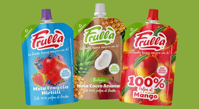 Il restyling ha interessato tutti i prodotti e per l’occasione sono stati leggermente modificati anche i nomi delle linee: Frullà Classico diventa semplicemente Frullà, la linea Bio si estende in Biologico, la linea Puro (monogusto) diventa 100% rendendo immediatamente chiaro il suo valore aggiunto.