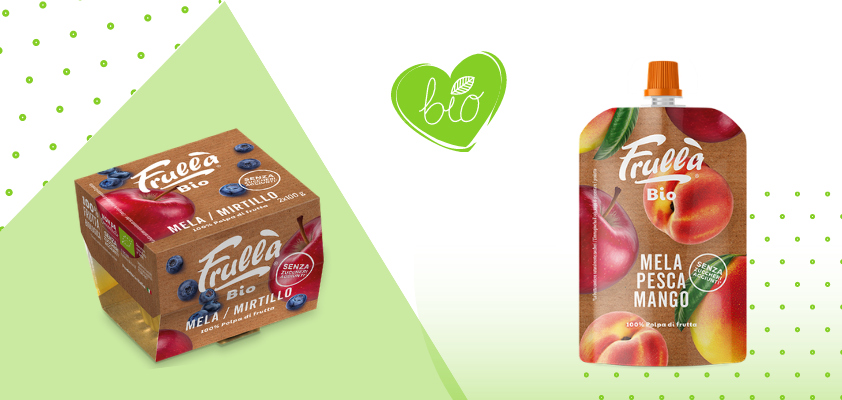 Spiegano dall’azienda: «Per essere riconoscibili bisogna essere chiari. Per questo abbiamo un solo marchio per identificare tutte le nostre referenze di frutta frullata: Frullà. Una sola identità, forte e precisa, declinata per target e segmenti di mercato, come in questo caso il biologico. Per essere diversi, restando se stessi».
