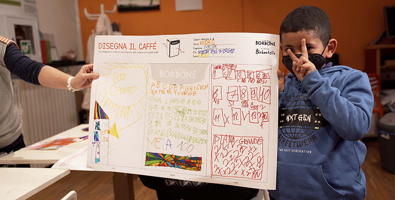 Per dare continuità al progetto, Caffè Borbone sostiene le attività formative dei bambini attraverso una donazione alle onlus che hanno partecipato attivamente al progetto, coordinate da Sustenia.