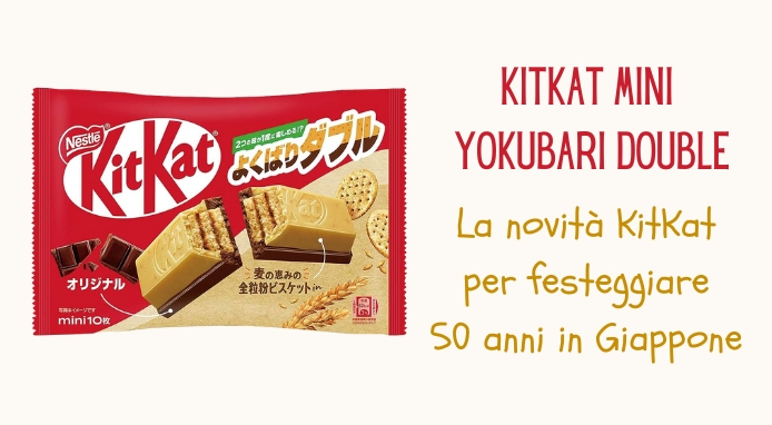 KitKat, la famosa barretta di wafer ricoperta di cioccolato al latte, compie 50 anni in Giappone e si presenta con una nuova versione ancora più golosa e croccante: KitKat Mini Yokubari Double. Il nuovo gusto è frutto di 3 anni di sperimentazioni da cui sono nati 100 prototipi diversi, fino ad arrivare alla scelta di quello ufficiale, sintesi di due diversi KitKat già ben noti ai consumatori nipponici: “Whole Wheat Biscuit In” e “Original”.