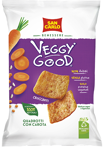 Una grande novità arriva in casa San Carlo, la famiglia Veggy Good naturalmente irresistibile si allarga: alla gamma di prodotti che hanno saputo coniugare benessere e gusto si uniscono ora i nuovi Quadrotti con carota, riso e lenticchie, gli snack croccanti che non c’erano, dal colore sorprendente dato solo dai loro ingredienti 100% naturali, ottima fonte di proteine vegetali e fibre, perfetti per chi desidera una pausa che unisca benessere ma senza rinunciare al gusto.