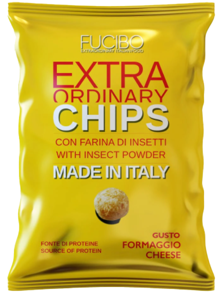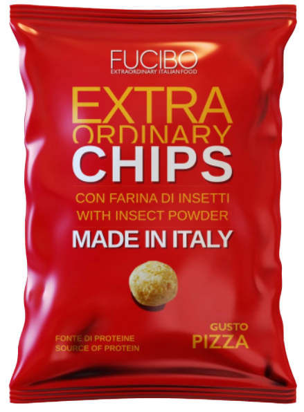 Grazie alla farina di insetti, le chips Fucibo hanno il 50% in meno di grassi e il 50% in più di proteine rispetto a quelle tradizionali e sono disponibili nei gusti pizza e formaggio: il mix perfetto di tradizione e innovazione.