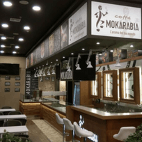Nella lussuosa struttura si potranno gustare le nuove miscele Mokarabia, dall’aroma unico e inconfondibile, come Espresso, Dama Bianca, Caffè Shakerato, Cappuccino e Mokaccino. Un’atmosfera accogliente ed elegante caratterizza il nuovo Coffe Bar, dove i colori scelti per le pareti ricordano le tonalità del caffè. Un ambiente ricercato, dove tutto è studiato per far vivere la storia dell’importante marchio che coincide la storia della migliore tradizione italiana.
