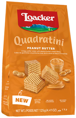 Loacker presenta la linea Peanut Butter, in cui una deliziosa crema alle arachidi arricchisce le tradizionali cialde e i biscotti Loacker, dando vita a nuovi deliziosi prodotti nelle versioni Wafer Classici, Quadratini, Tortina, Gardena e Biscuits.
