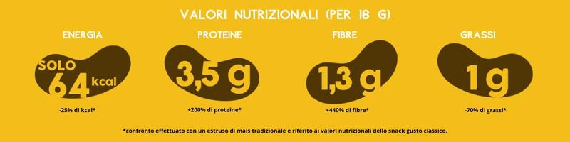 GUSTO FORMAGGIO – Miscela di farine di legumi in proporzione variabile 85% (Lenticchie rosse, Piselli Verdi, Ceci, Fagioli Borlotti) arricchita con formaggio;