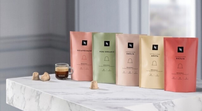 È disponibile, presso 60 boutique Nespresso selezionate, la prima collezione di capsule compostabili a base di polpa di carta. Queste capsule, nate da un processo di ricerca e sviluppo durato più di 3 anni, sono realizzate per l’82% di polpa di carta e sono certificate dal TÜV Austria come smaltibili direttamente a casa nella frazione organica dei rifiuti.