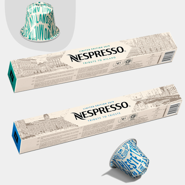 La Limited Edition Tributo a Trieste riflette la ricca e variegata esperienza culturale che la città giuliana offre. Crocevia tra la cultura italiana, germanica e slava, Trieste rappresentava il principale sbocco marino di uno dei più grandi imperi mondiali, quello Austro-Ungarico, e tutti i chicchi destinati ai caffè di Vienna sono passati prima dal porto triestino. Il ruolo speciale che il caffè riveste in questa città è dimostrato dal fatto che gli abitanti di Trieste hanno persino creato un linguaggio specifico attorno al caffè – “nero” per l’espresso, “capo” per quello con un goccio di latte e “in b” quando il caffè viene servito in un bicchiere invece che nella solita tazza di porcellana. Milano, invece, ha rivestito un ruolo significativo nel plasmare la storia del caffè in Italia, introducendo l’espresso per la prima volta in occasione dell’Esposizione Universale nel 1906.