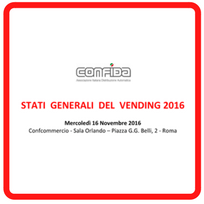 14-10-2016 – Anche quest’anno gli Stati Generali del Vending, organizzati da CONFIDA, si svolgeranno a Roma presso la sede di Confcommercio e vedranno l’intervento di numerose figure istituzionali, insieme alle quali verranno affrontate tematiche sensibili per il settore.