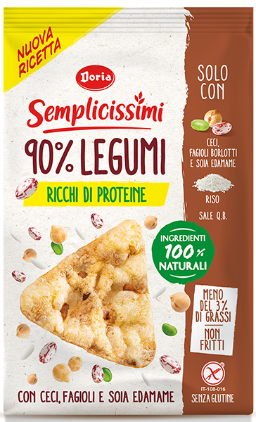 Arriva da Doria una gustosa novità: Semplicissimi 90% Legumi, i nuovissimi snack ideali per un momento di benessere senza rinunciare al gusto. Perfetti per chi cerca genuinità e semplicità, sono gli unici con il 90% di legumi, da oggi ancora più croccanti!