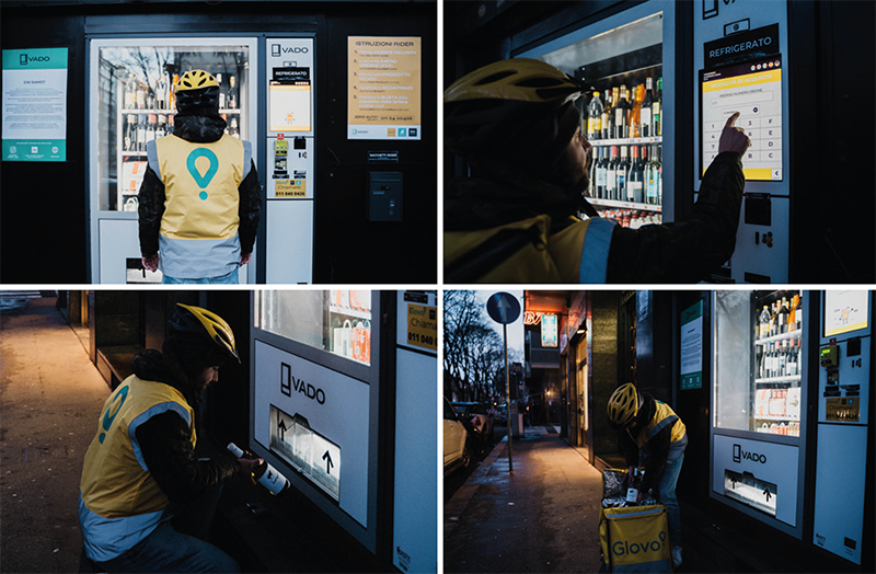 Ricordiamo che il progetto VADO è un sistema di delivery di prodotti basato su un software che permette a qualsiasi vending machine, dotata di touch screen, di inserire i prodotti caricati al suo interno nelle principali app di delivery (Glovo, Deliveroo, Just Eat, Uber Eats). Il consumatore finale vede sulle app di delivery la vending machine come se fosse un normalissimo negozio, sceglie i prodotti e li acquista. A quel punto l’app di delivery manda il rider davanti alla vending machine con un codice d’ordine; il rider lo inserisce nel touch screen e la vending, grazie al software di Vado, eroga esattamente i prodotti ordinati online dal cliente.