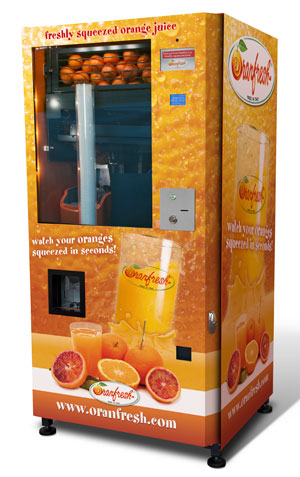 Primo al mondo nell’invenzione ed evoluzione dei distributori automatici di succo fresco d’arancia appena spremuta, il marchio Oranfresh® – grazie alle innovazioni introdotte dall’AAT Agroindustry Advanced Technology S.p.A. e all’esclusivo processo di spremitura brevettato internazionalmente – offre al comparto Vending macchine adatte a ogni esigenza, anche per servizi take away, così da garantire le salutari proprietà di una bevanda naturale e prelibata ovunque ci si trovi. Scuole, palestre, ospedali, centri commerciali, aeroporti, stazioni e luoghi di lavoro sono tutti posti ideali per accogliere l’accattivante e colorato design dei distributori Oranfresh®, con varie dimensioni adatte a ogni location.