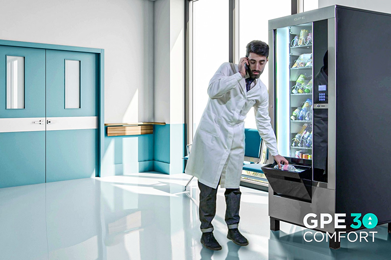 Infine la novità assoluta che verrà presentata in anteprima mondiale al salone di Venditalia: un distributore non più a spirali che eroga prodotti voluminosi: tutto da ora potrà essere venduto tramite i distributori GPE, perché ogni distributore, in GPE, nasce dall’ascolto del cliente e delle sue esigenze. Questo è il segreto del successo di questo marchio e della sua resistenza nel tempo.