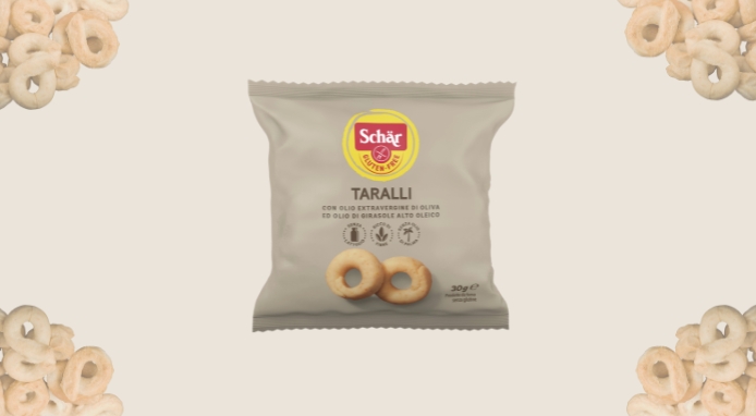 Schär Foodservice, divisione del Gruppo Dr. Schär dedicata al canale Ho.re.ca. e da anni impegnata nel garantire la miglior esperienza di gusto fuori casa alle persone con esigenze alimentari specifiche, presentaTaralli proposto nella pratica monodose da 30g. Questa soluzione consente ai professionisti della ristorazione di offrire uno snack perfetto per l’aperitivo o come spezza fame durante spostamenti o pause di ristoro.