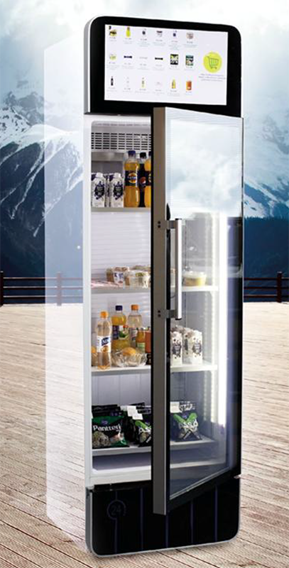 • il frigo intelligente, ovvero una frigovetrina, che ha a bordo e gestisce il sistema delle etichette Rfid con le quali vengono contrassegnati i prodotti in vendita, e che si apre una volta che avrà identificato l’utente attraverso una card bioattiva, un terminale bancario, o qualsiasi altro sistema di pagamento e di riconoscimento;