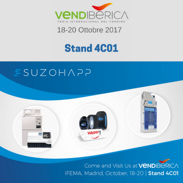 16-10-2017 – SUZOHAPP è pronta ad accogliere i visitatori di Vendiberica che si terrà dal 18 al 20 ottobre presso il Centro Espositivo IFEMA di Madrid. SUZOHAPP sarà presente presso lo Stand 4 C01 per mostrare la sua vasta offerta di soluzioni per la gestione dei pagamenti cash & cashless.