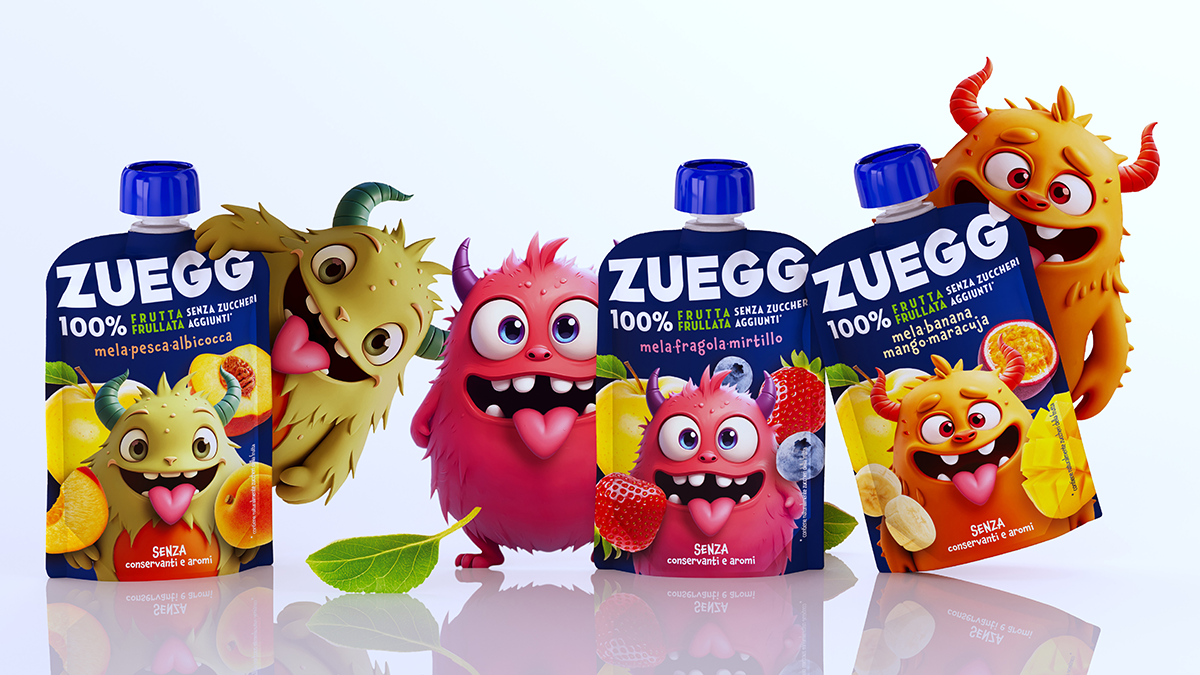 Il design delle confezioni punta su colori vivaci e illustrazioni giocose, ma con un linguaggio moderno che riflette l’identità Zuegg: tradizione, qualità e innovazione.